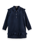 CORD RUFFLE DRESS- SKY CAPTAIN